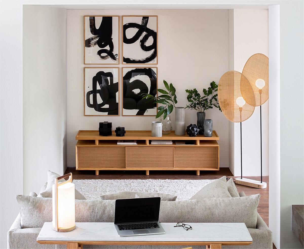 Yekupe TV Stand with 2 Rattan Weaving Doors